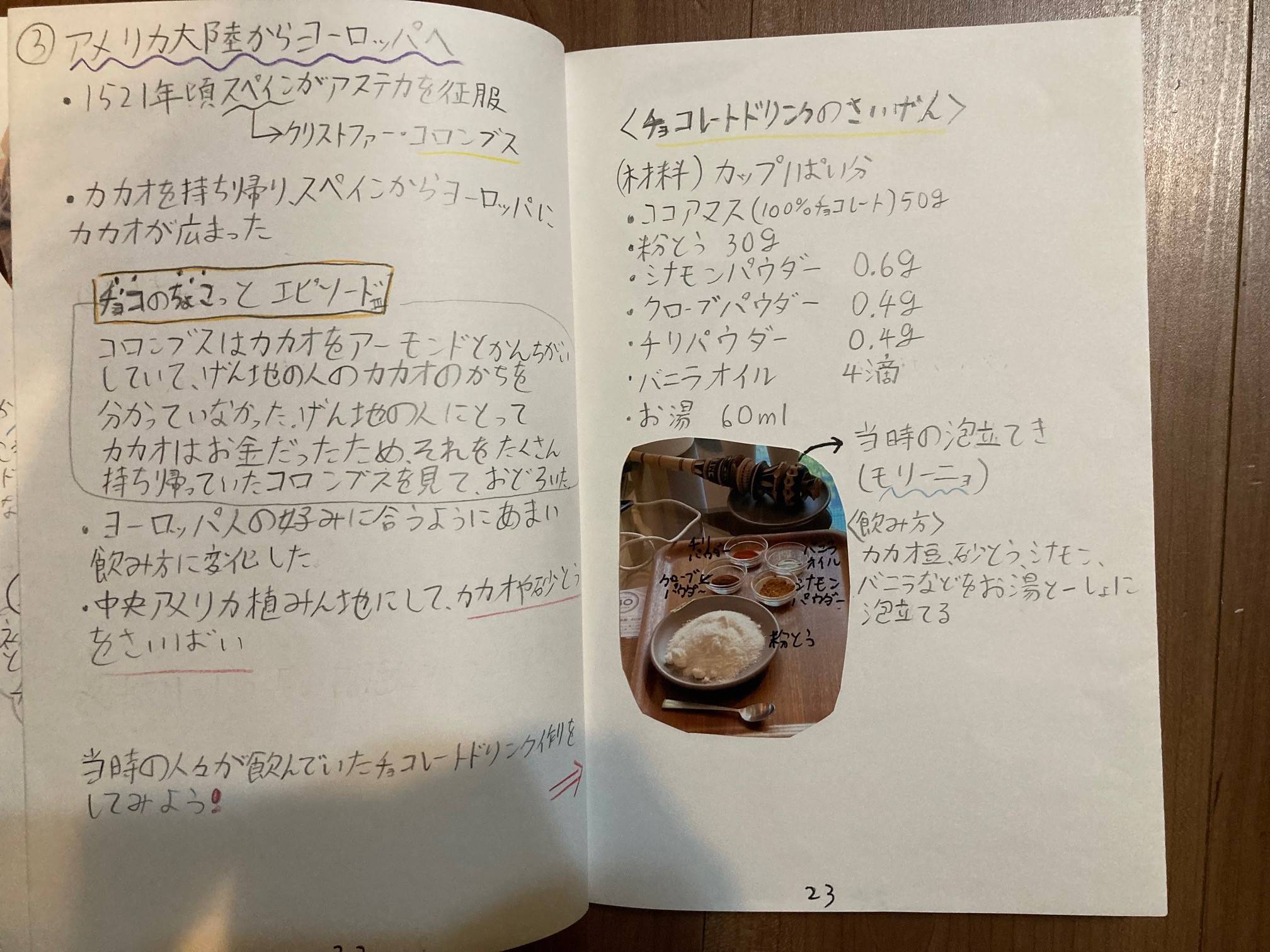 今回は「【親子向け】チョコレートの歴史を体験しよう!」のクラスに参加していただいた、小学4年生の自由研究をご紹介します。