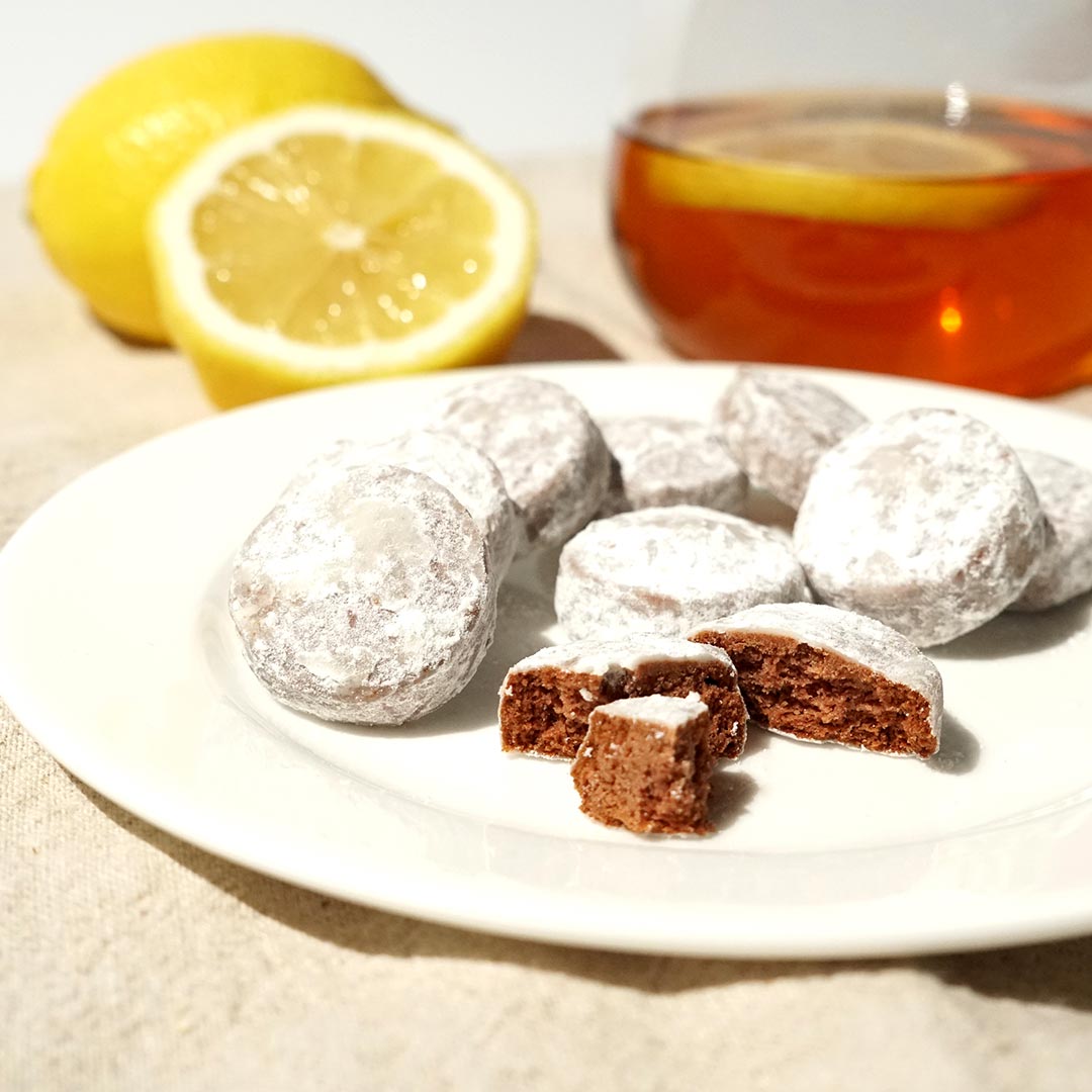 チョコレート生地に細かく刻んだレモンピールを練り込み、ほろほろとした食感に焼き上げました。