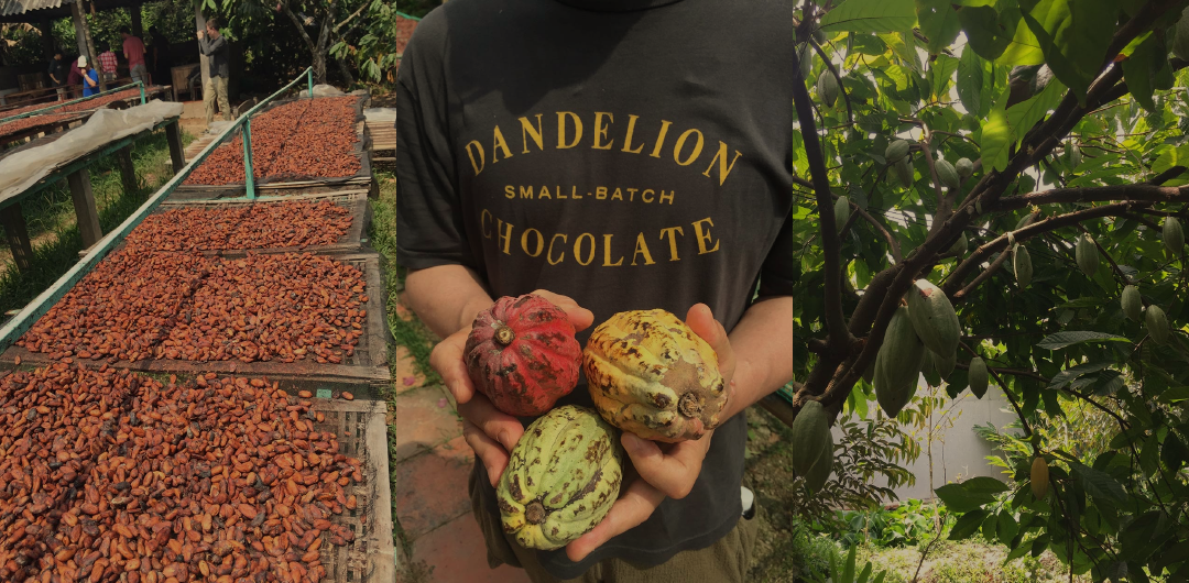 一般にカカオの木は赤道の南北緯度20度以内で育ち、カカオポッドという果実をつけます。ダンデライオン・チョコレートでは、カカオ豆を買い付ける際は農園を訪ね、生産者について知り、彼らがどのように働いているのかを見に行くようにしています。