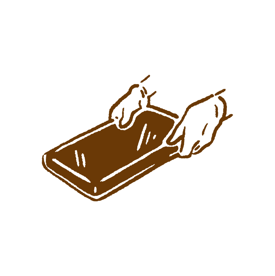 この工程が豊かな風味をバーに閉じ込め、溶けにくく、パキッと割れる独特の感触を生み出します。こうした性質はカカオ豆に含まれているカカオバターが結晶化することで起こります。カカオバターは6つの異なる結晶型を持っていますが、私たちのこだわりはV型と呼ばれる結晶型を作り出すこと。そのためには加熱と冷却を正確に行う必要があります。最後に約15〜20分適温で冷却すれば成形の完成です。