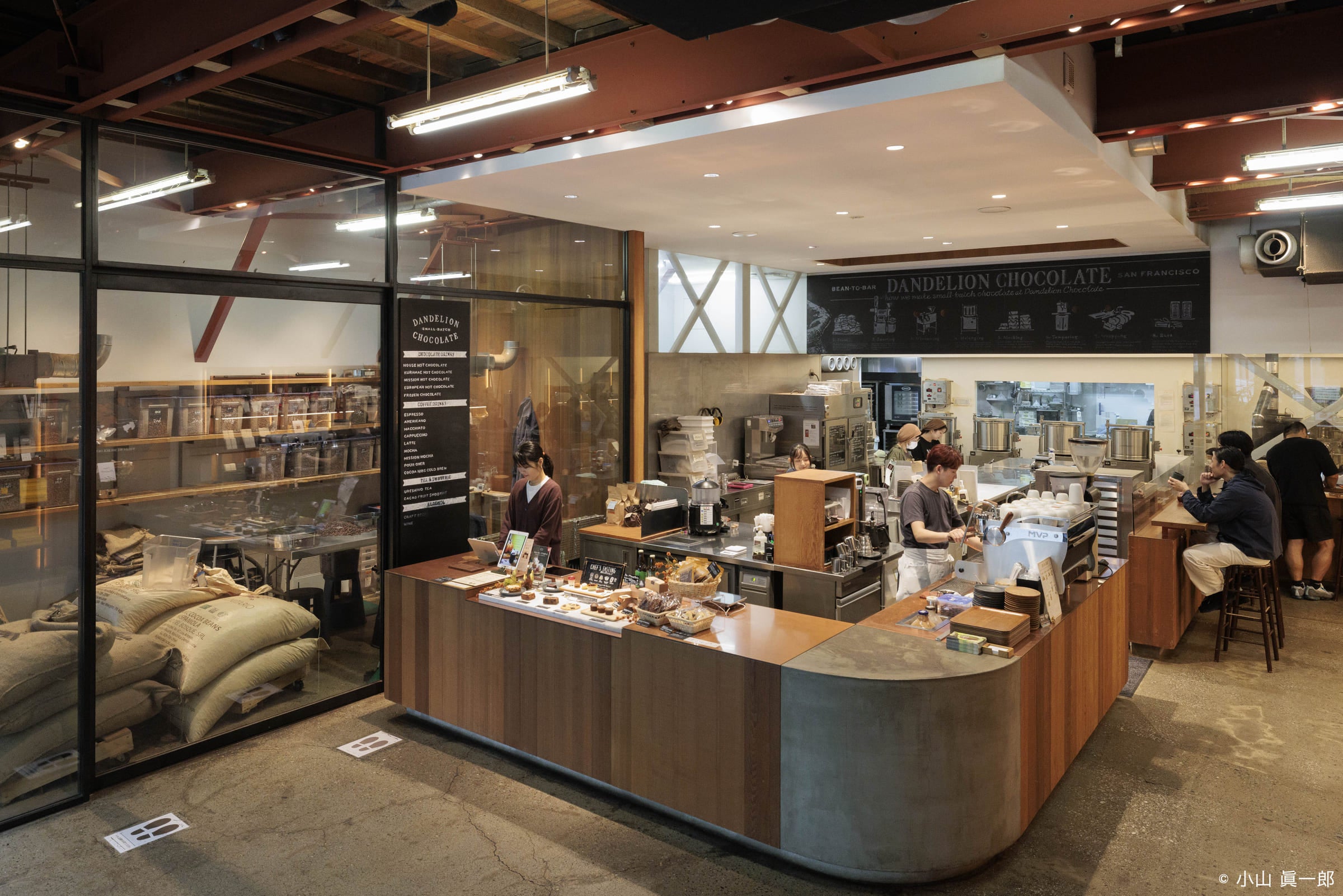 製造工程を間近で見ながら、チョコレートドリンクやスイーツを楽しんでいただけます。