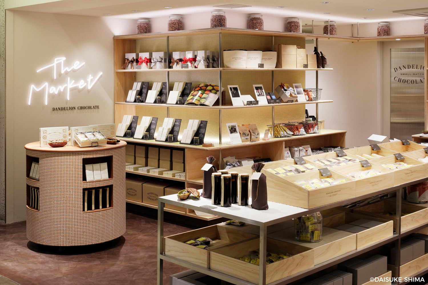 "The Market"は、チョコレートから生まれる多彩な商品が集合した「マーケット」を意味しています。吉祥寺店は小さいながらもテイスティングスペースを備え、チョコレートの世界を広げるコラボレーション商品やオリジナルグッズもご用意しました。