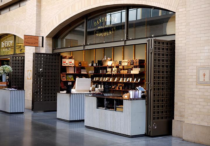 サンフランシスコのミッション地区にある、ダンデライオン・チョコレート第一号店。カカオの麻袋で作ったバッグや地域のパティシエたちとの限定コラボ商品もあります。