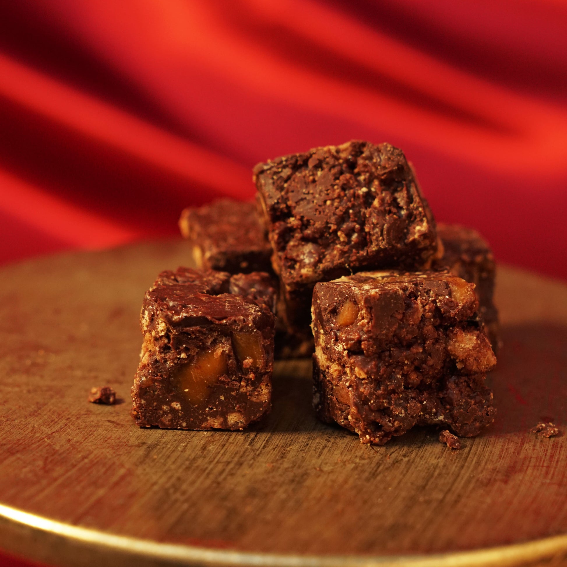 香ばしいトフィーを砕いてチョコレートに混ぜ込んだ、食感も楽しめるお菓子です。濃厚なカカオとキャラメルのやさしい甘さが、冬のひとときをあたたかく包み込みます。
