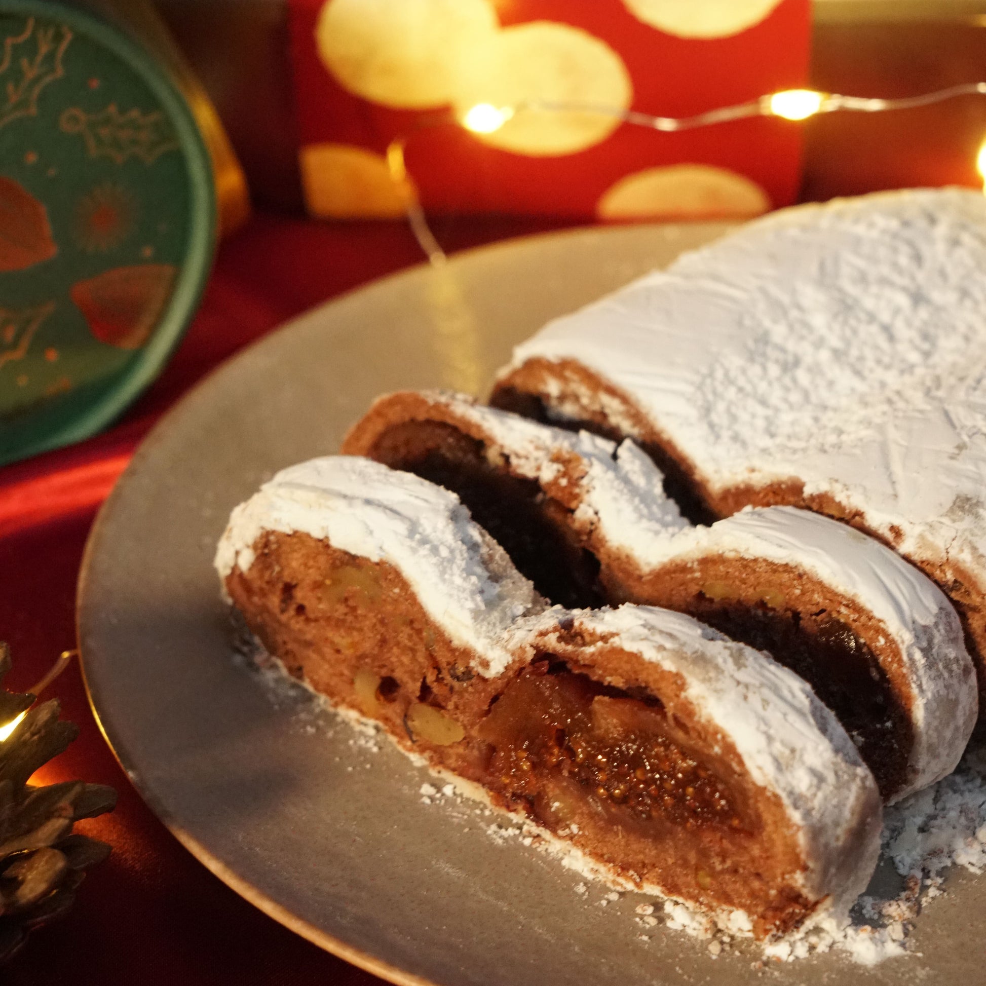 周りのシュガーから微かに香るスパイス、中に入っているナッツやドライフィグの食感、そしてチョコレートの甘さと苦さ、とっても大人なシュトーレンでした!